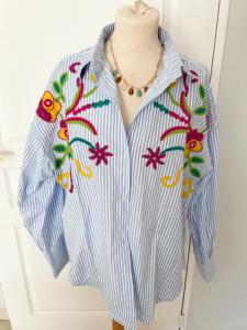 Chemise rayée fleurs brodées 42 48