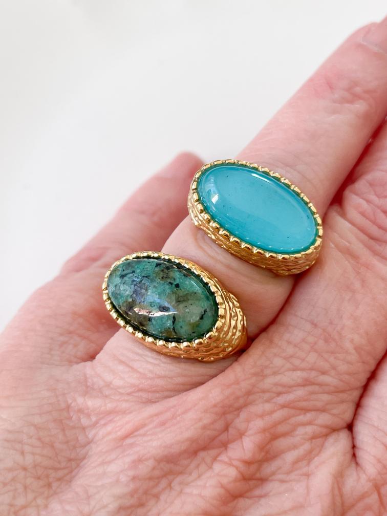 Bague pierre verte doré du Live