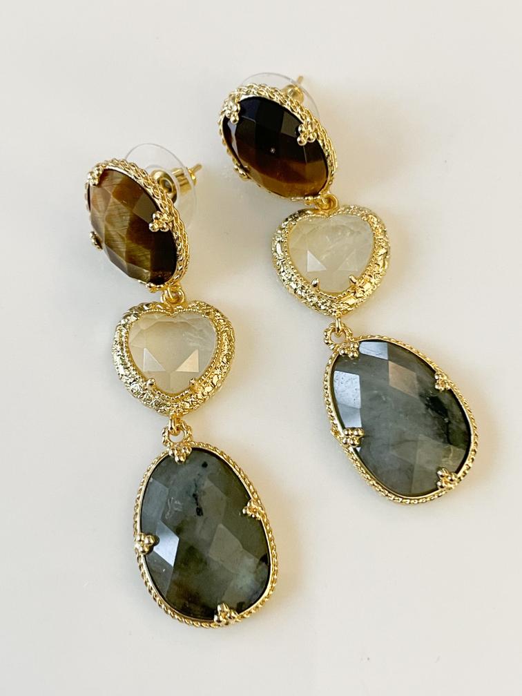 Boucles pierres Georgia gris doré