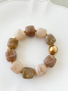 Bracelet perles duo beige marron doré