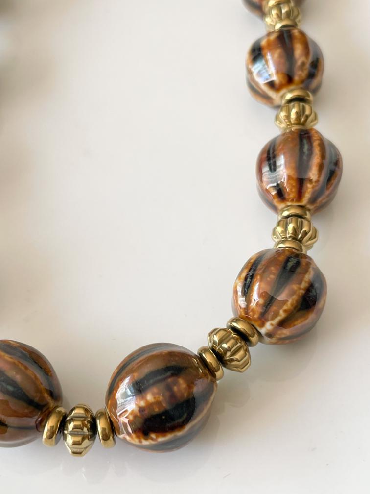 Collier Biba marron doré