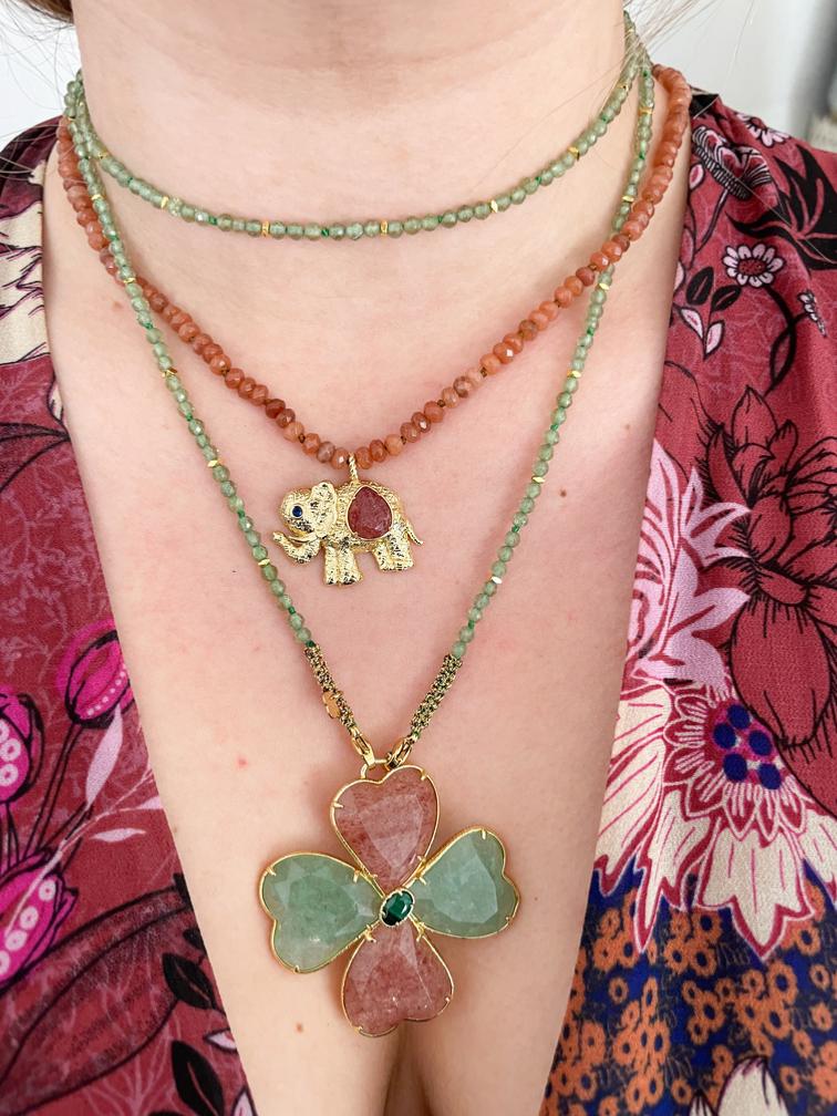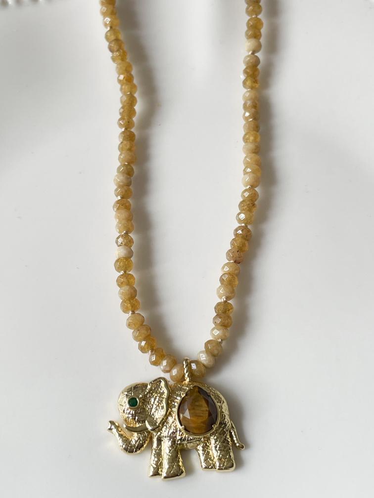 Collier éléphant pierres ocre doré
