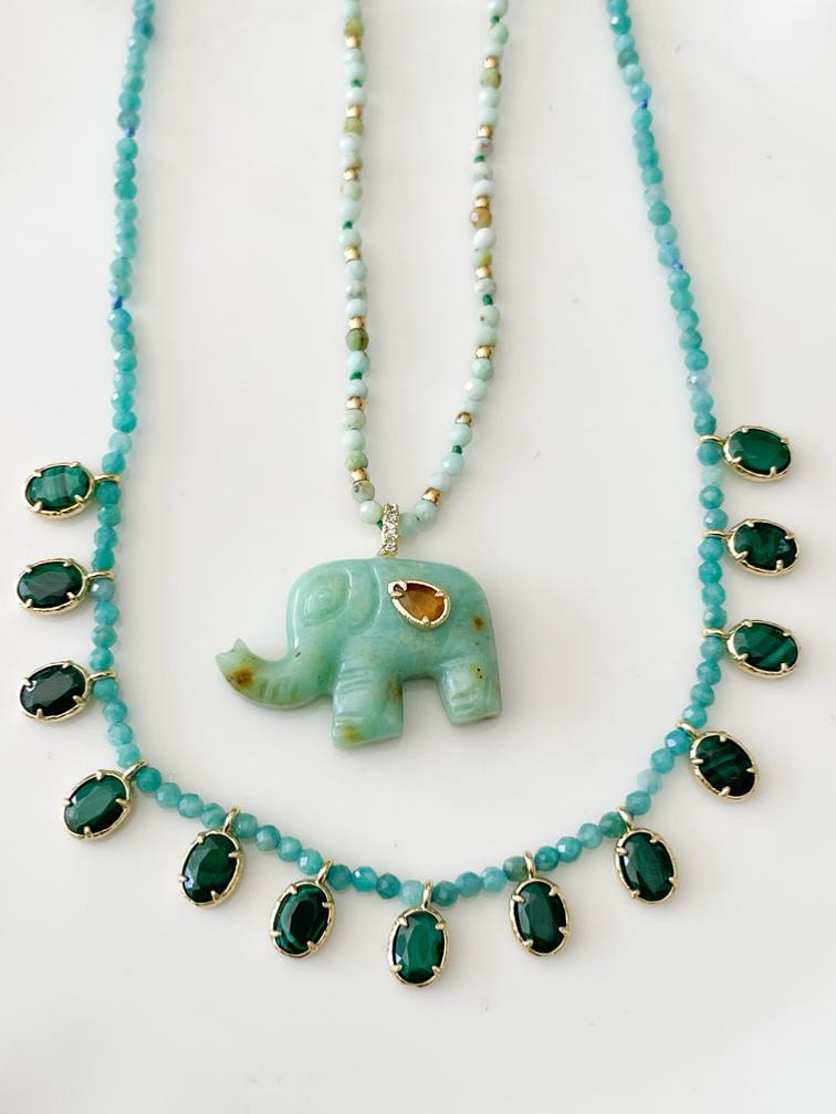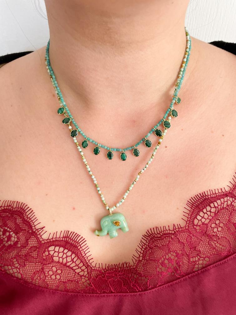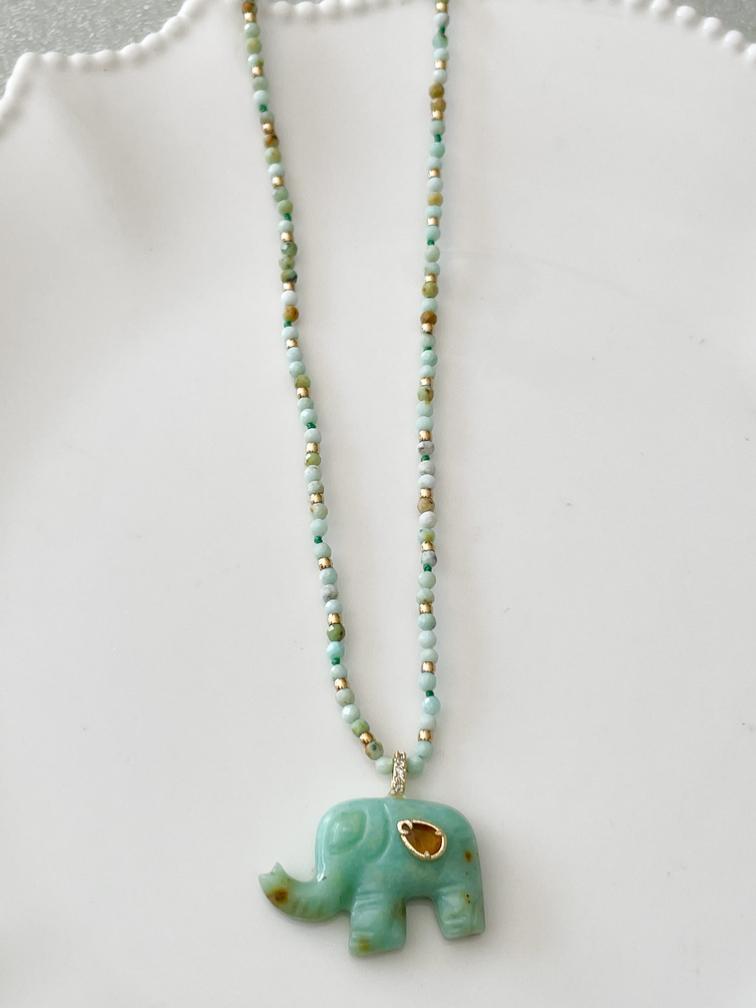 Collier éléphant pierres turquoise doré