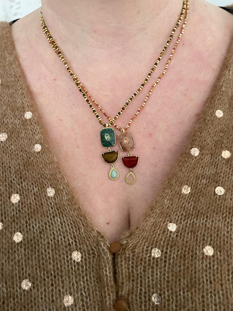 métal doré acier inoxydable perles dorées et perles de pierres colorées médaillon pierres quartz rose et Cornaline oeil de tige et Rubis zoisite