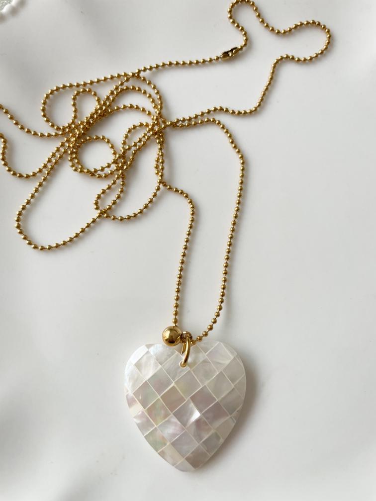 pendentif coeur nacré à carreaux