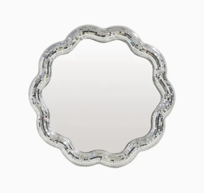 Miroir disco fleur argenté
