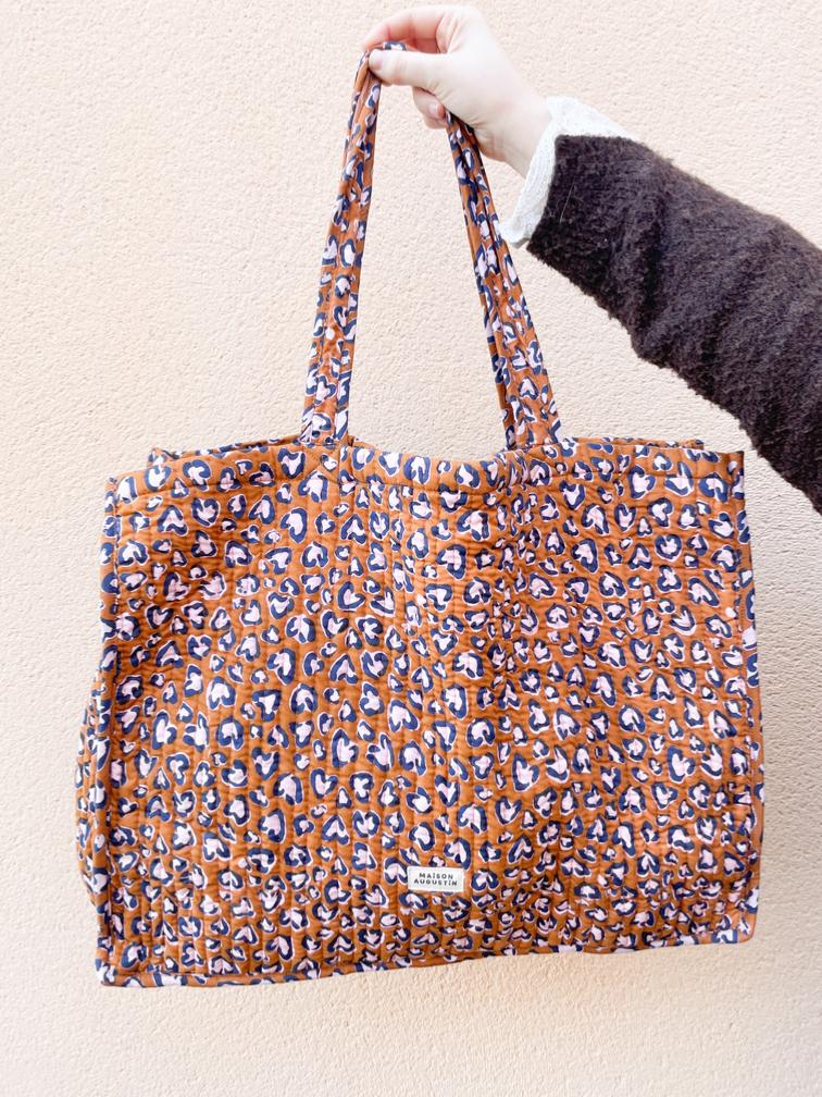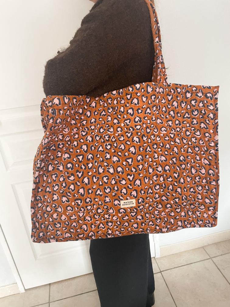 Ce sac a été imprimé de manière artisanale selon la technique d'impression blockprint et confectionné à Jaipur en Inde.