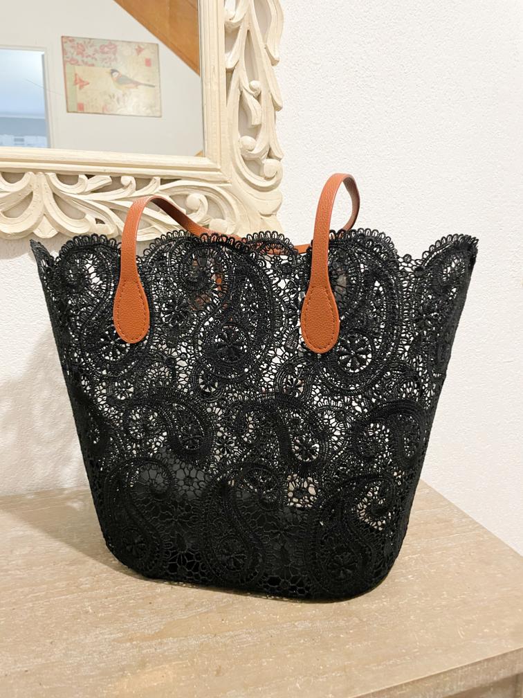 Sac panier dentelle noir